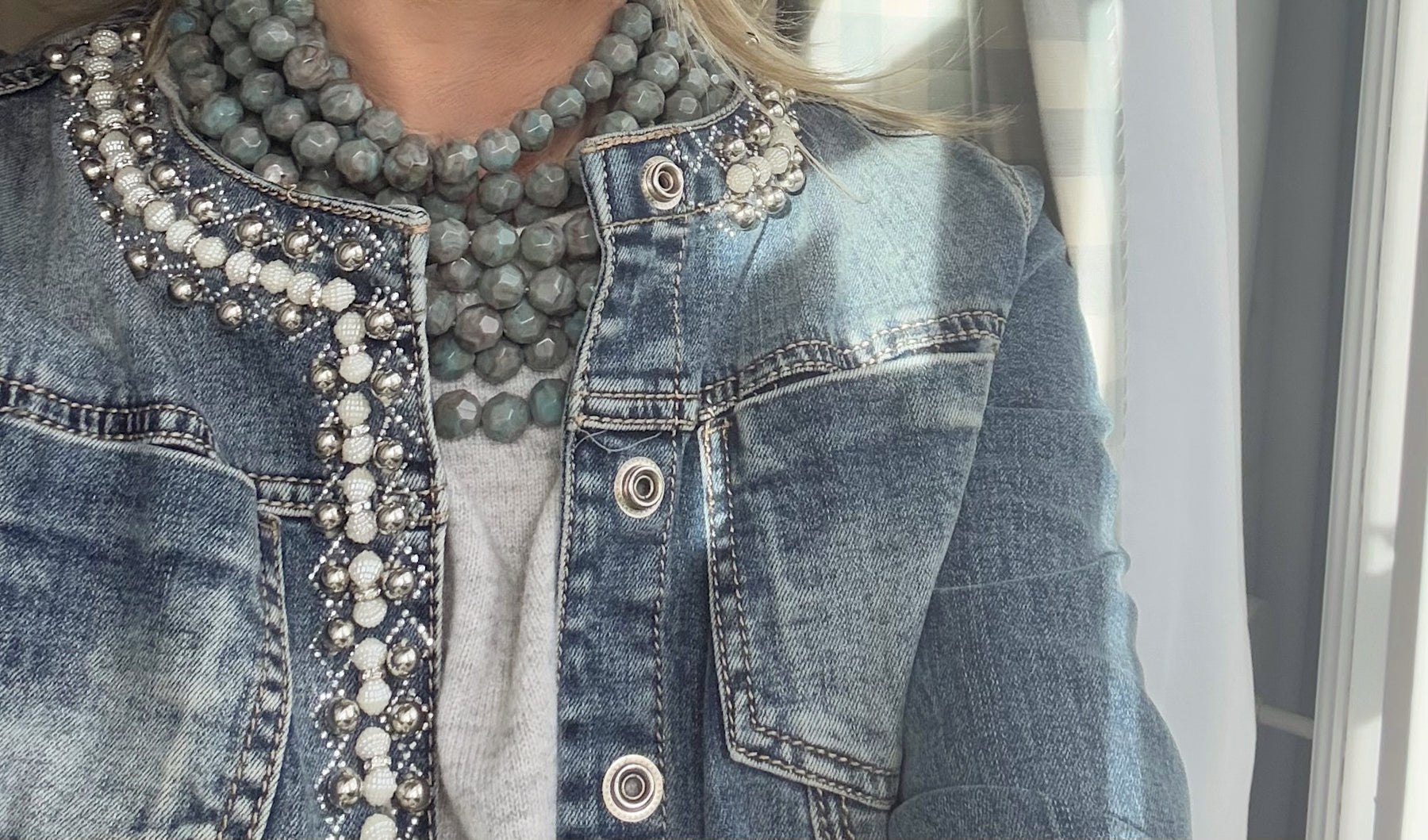 Multi-strand necklace with faceted resin beads