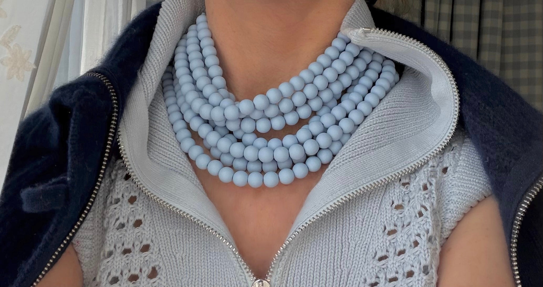 Multi-strand necklace with matte resin beads