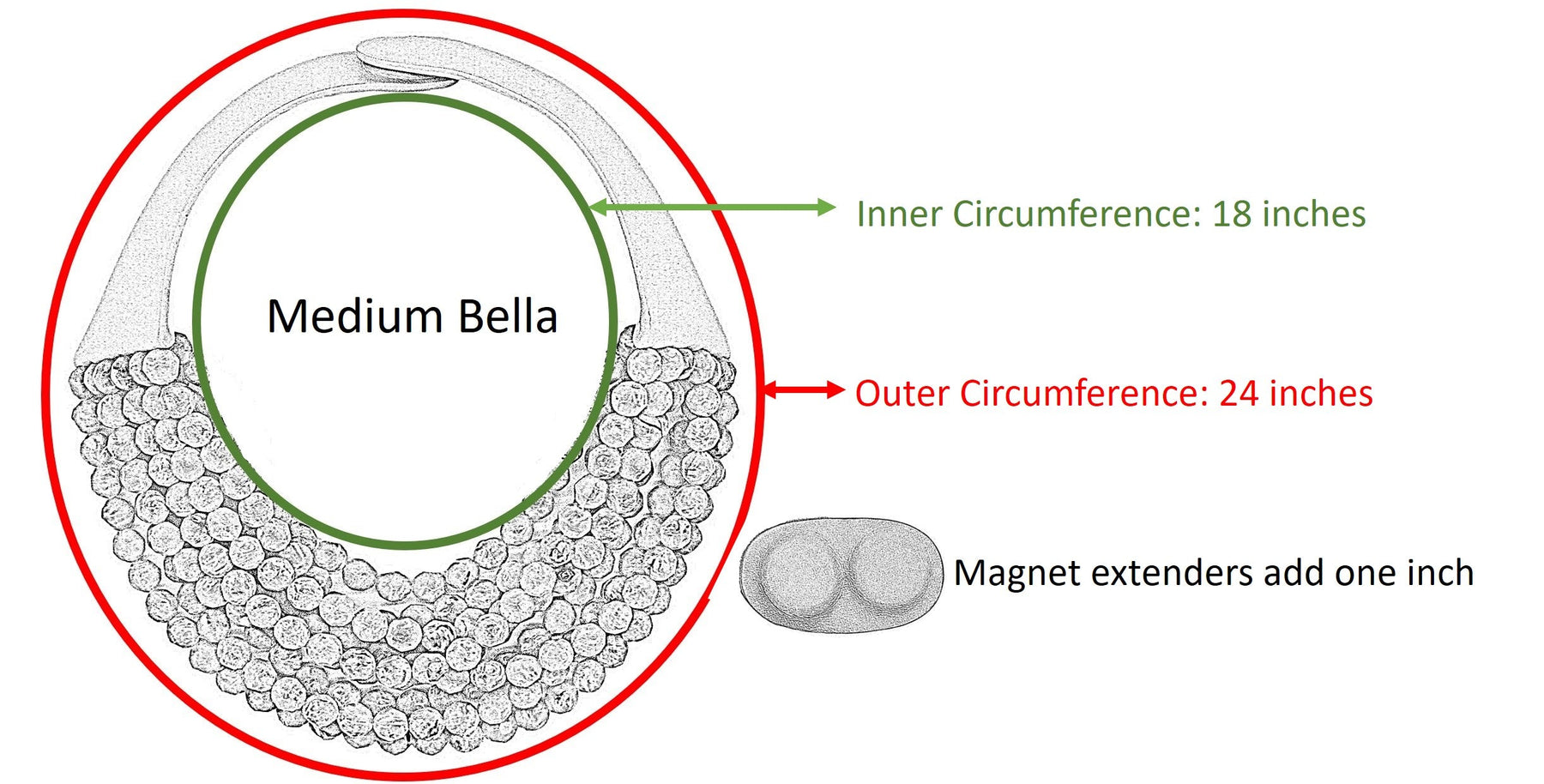 Adjustable magnetic closure for neck sizing. Extenders also available
