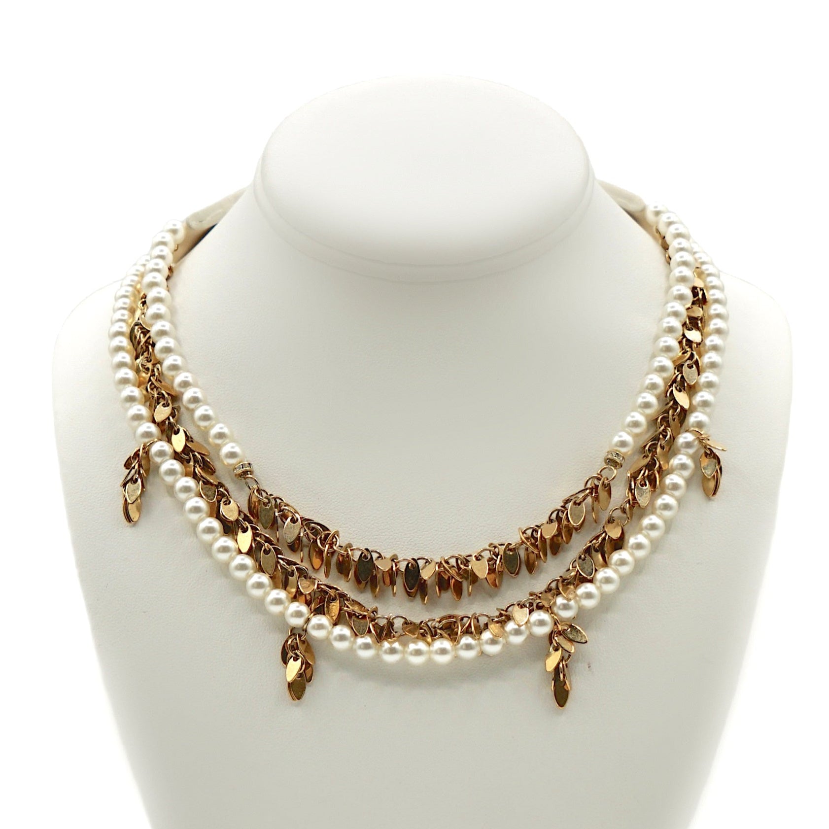 Multi 3 strand glass gold and crystal necklaceAdjustable rivet closure Handmade in Italy Fits all neck sizes