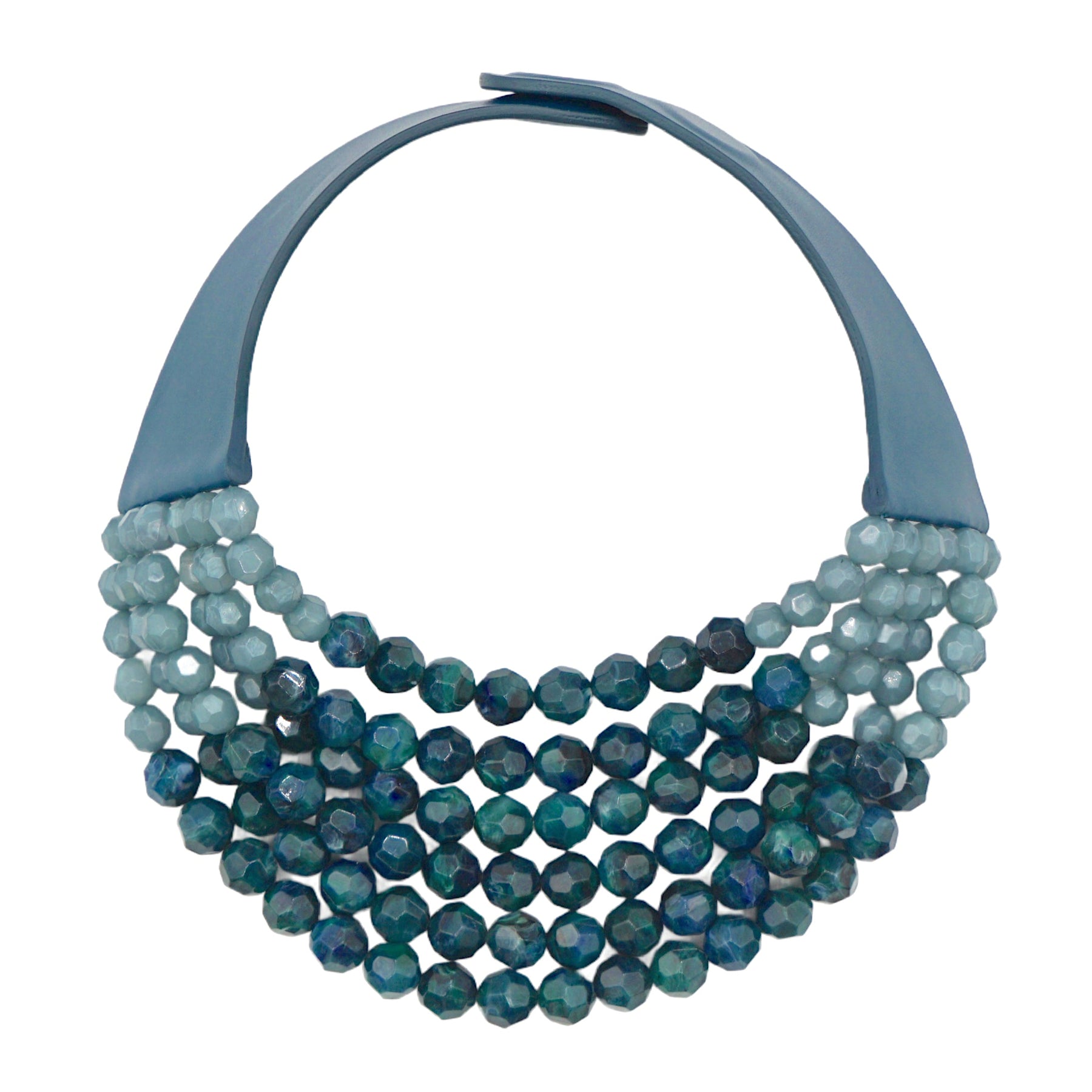 Multi-strand necklace features faceted resin beads in 8mm and 10mm sizes, arranged in a flattering bib silhouette that beautifully contours the neckline.