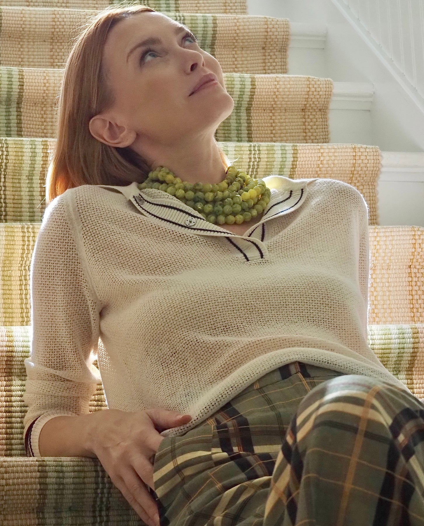 Multi-strand necklace with faceted resin beads