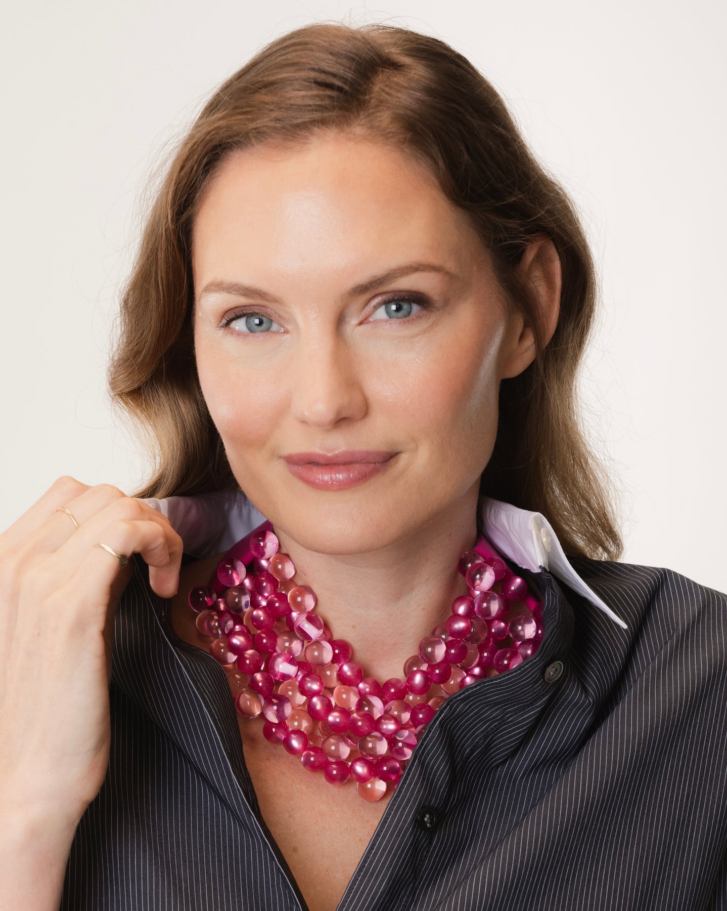 The Look: This necklace embodies the essence of an ethereal, floating design. The mesmerizing beads are meticulously strung, allowing them to sway gracefully with the natural movement of your neck. As light dances across the beads, their vibrant colors intensify, enhancing your overall look. This unique, show-stopping piece is crafted to turn heads and ignite conversation."